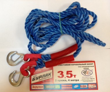 Наименование:  Трос буксировочный "БУРЛАК" канат (10т, 2 карабина, 6 м) в пакете
